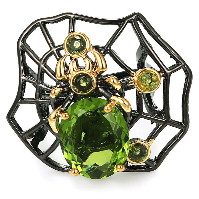 32x32mm Unique Neo-Gothic Spider 9.7g Green Peridot Ring