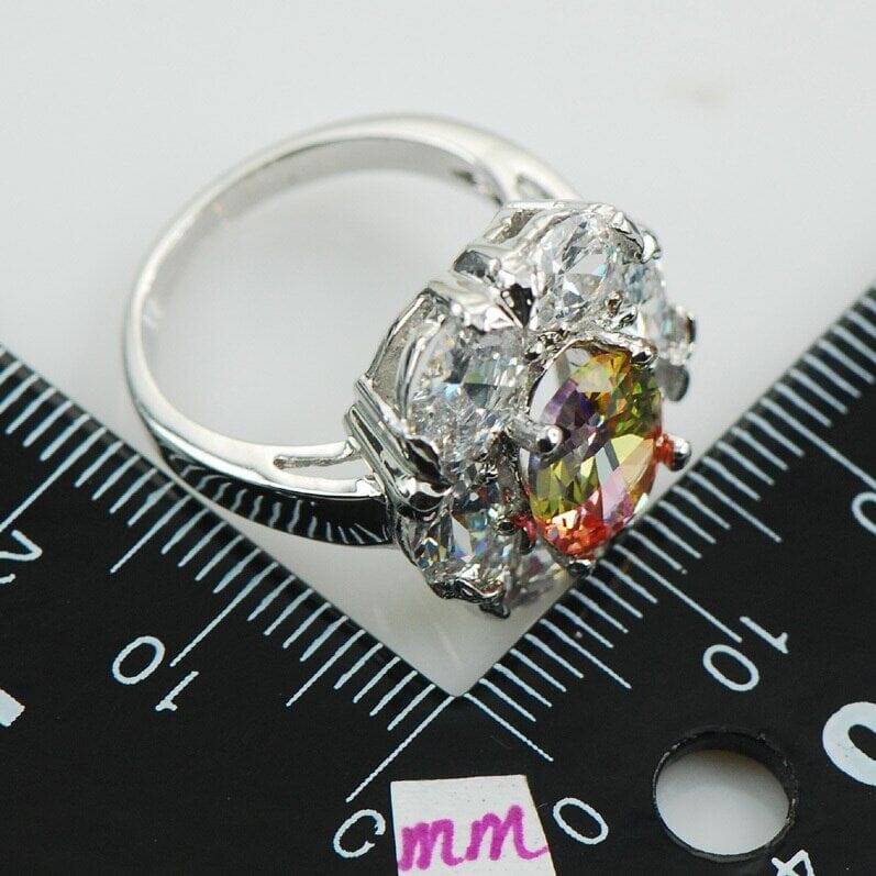 Flower Rainbow Fire Mystic Topaz CZ White Ring - 925 Sterling Silver
