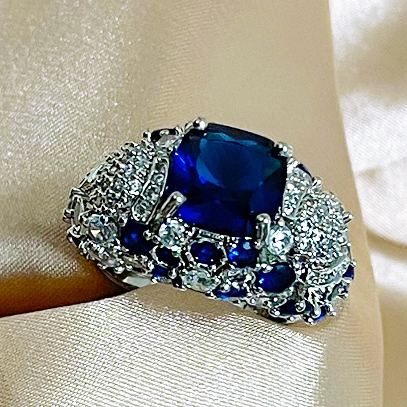 Elegant Silver 925 Ring For Charm Women With Oval Blue Sapphire Gemstones