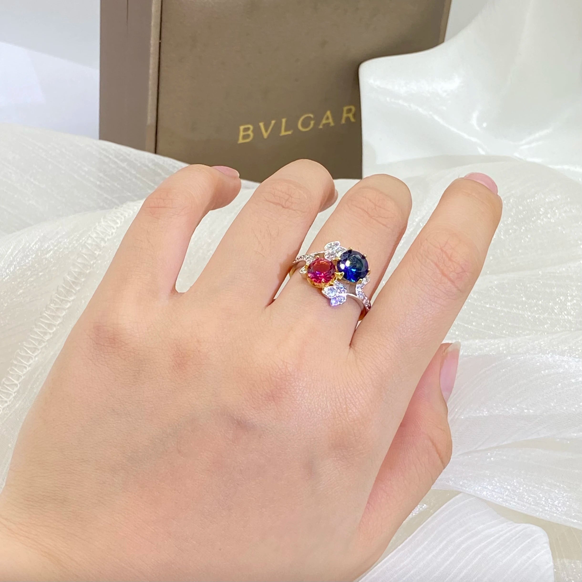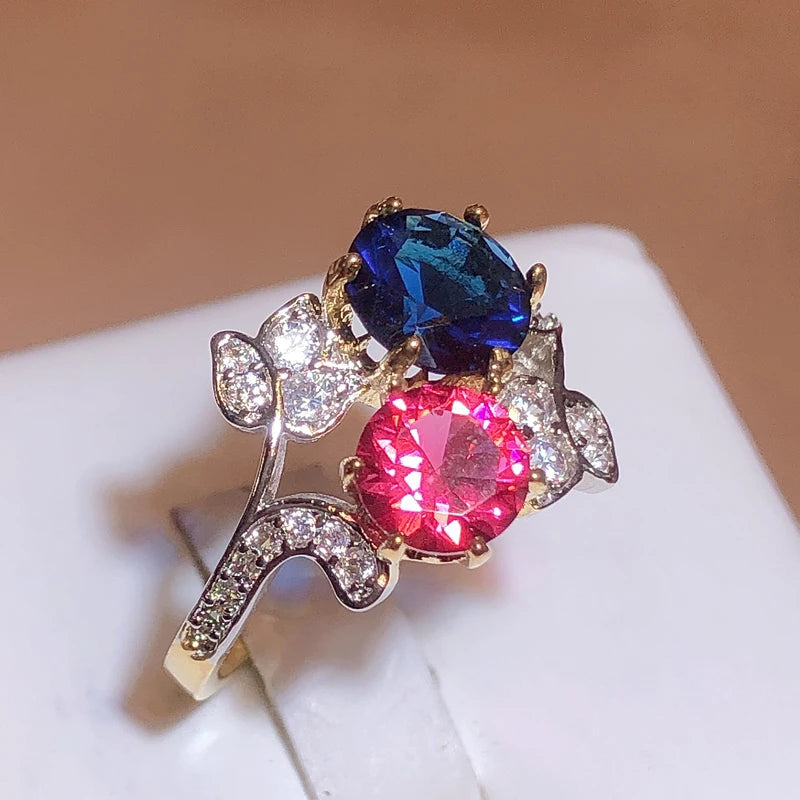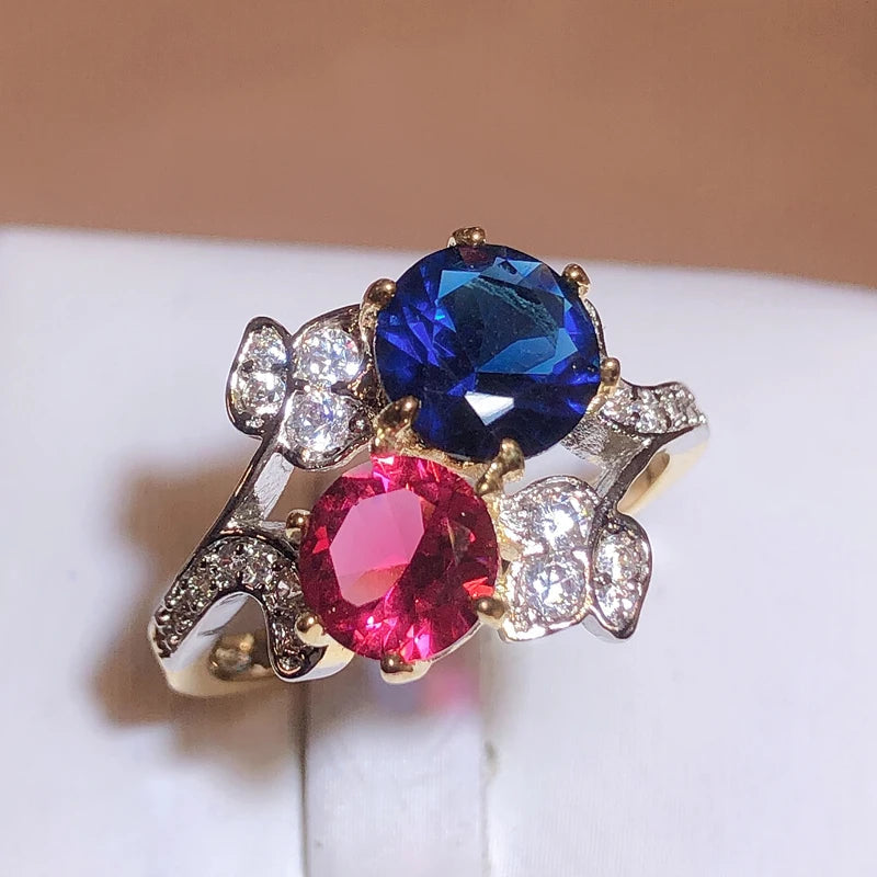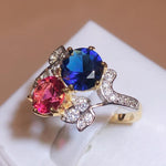 Elegant 925 Stamp Ring Sapphire Ruby Flower Plant
