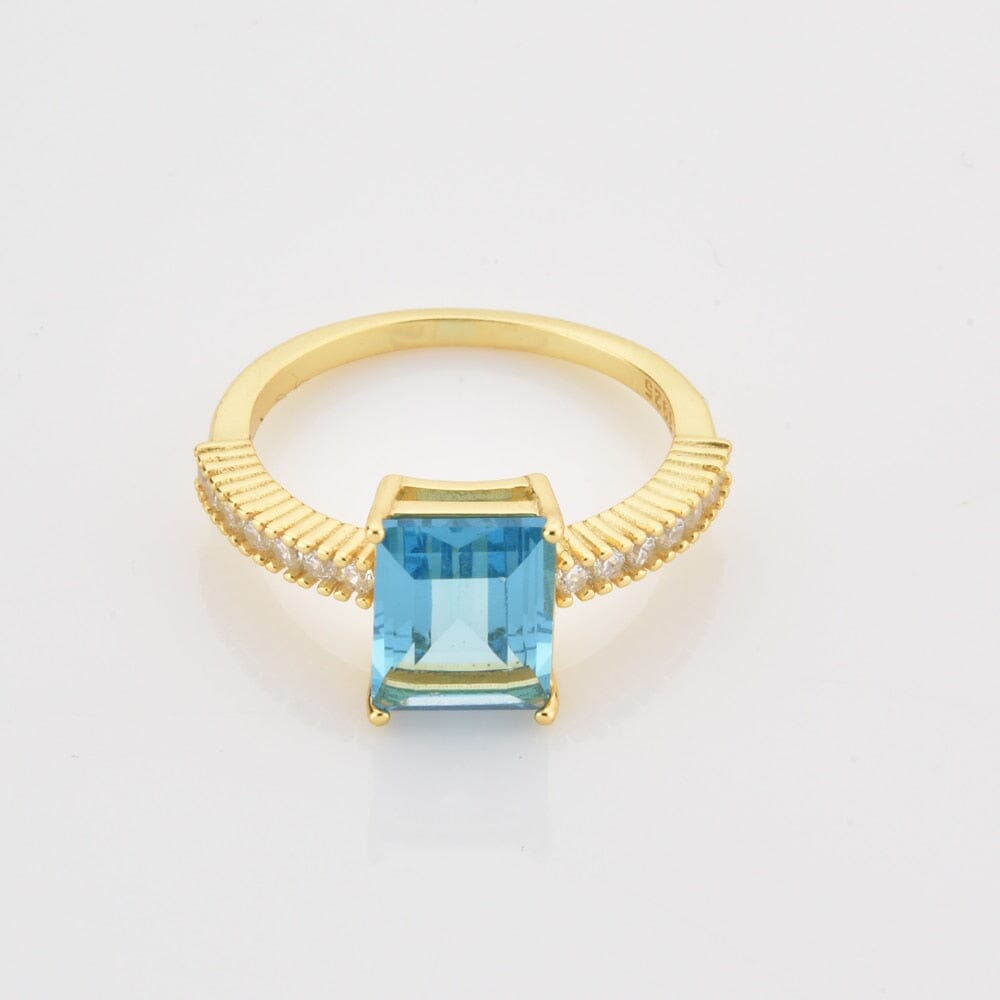 Your journey towards emotional healing and empowerment starts here. Embrace the beauty and transformative power of our Light Gold Coated Silver Blue Topaz Ring. Take a step towards a brighter, more vibrant you.