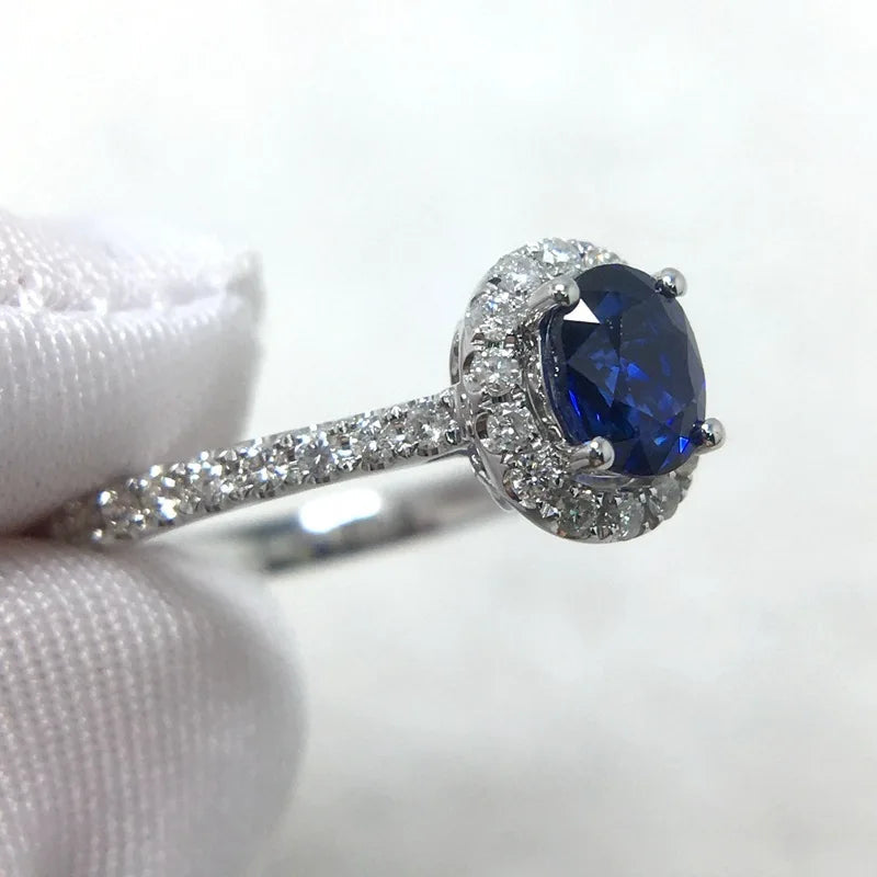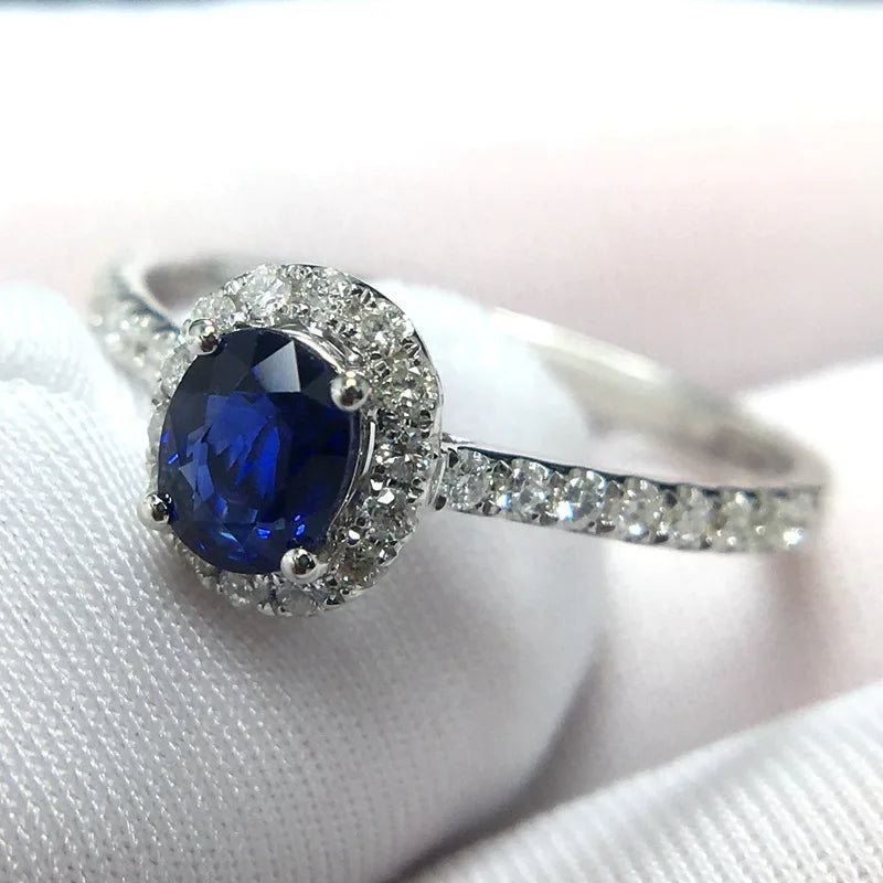 Natural Sapphire Rings for Women Sterling Silver 925 Wedding Filled Diamond
