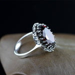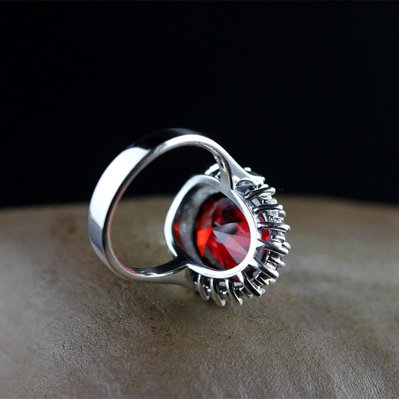 Embrace the transformative power of the Natural Red Garnet, a gemstone steeped in rich symbolism and healing properties. This exquisite ring, crafted from 925 sterling silver, is not just a piece of jewelry; it is a beacon of emotional release and empowerment.