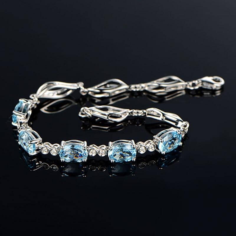 Unlock the potential of emotional and spiritual healing with our exquisite Sterling Silver Blue Topaz Charm Bracelet. Expertly crafted from high-quality 925 sterling silver, this bracelet not only complements your style but also enhances your well-being.